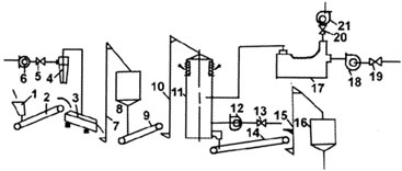 6.风机 7.提升机 8.前储仓 9.皮带输送机 10.提升机